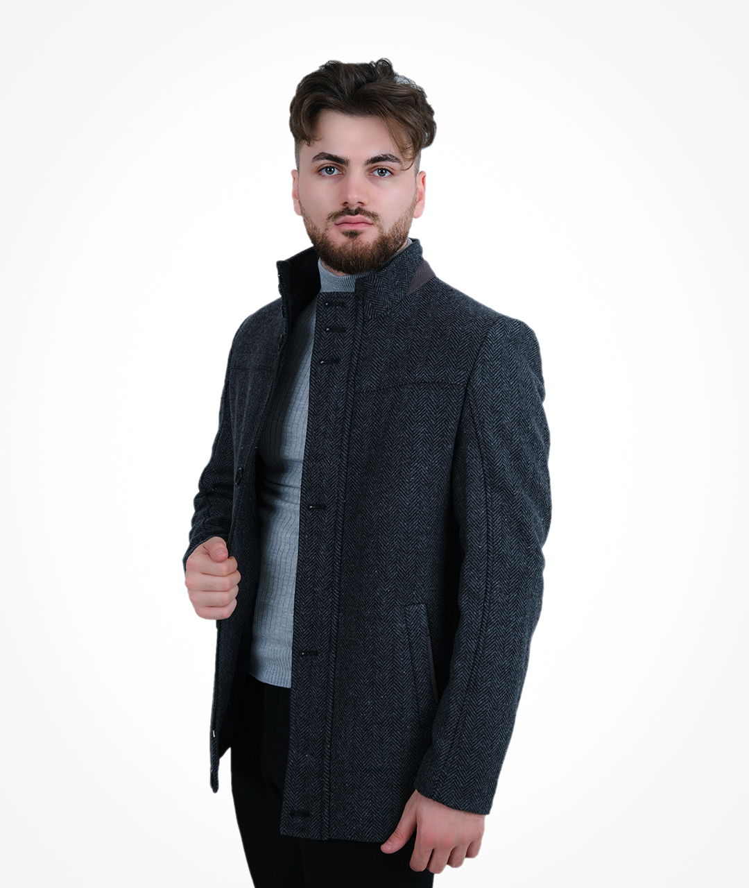 Czk Siyah Balık Sırtı Klasik Kaşmir Yün Erkek Kaban