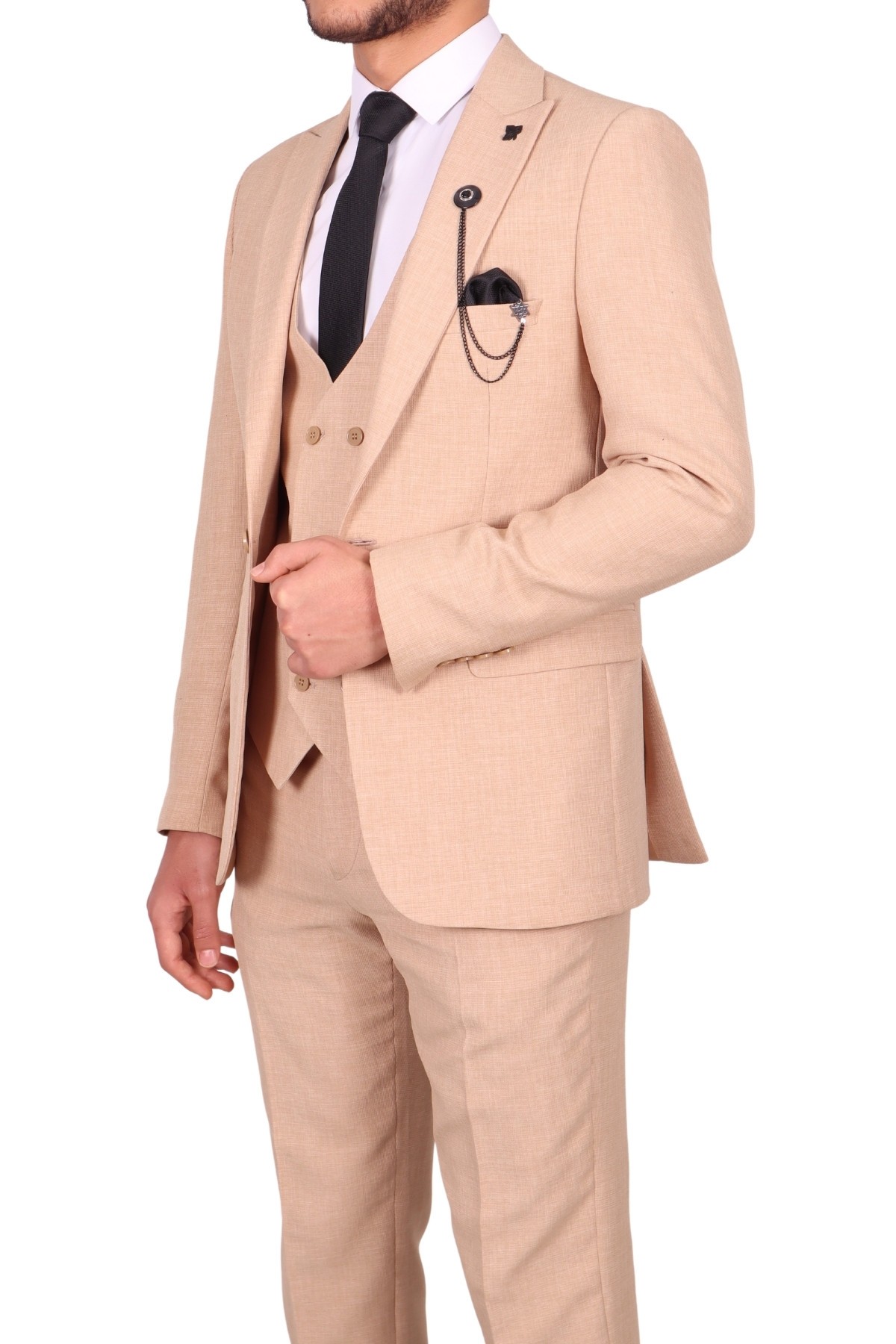 Vito Andolini Bej Slim Fit Yelekli Erkek Takım Elbise