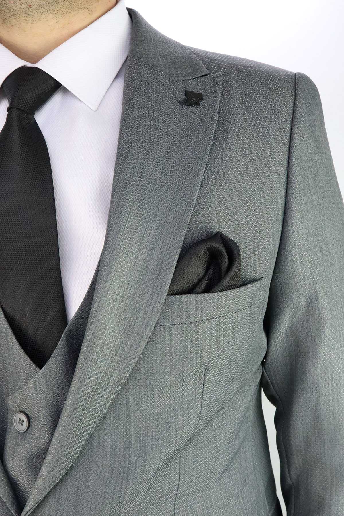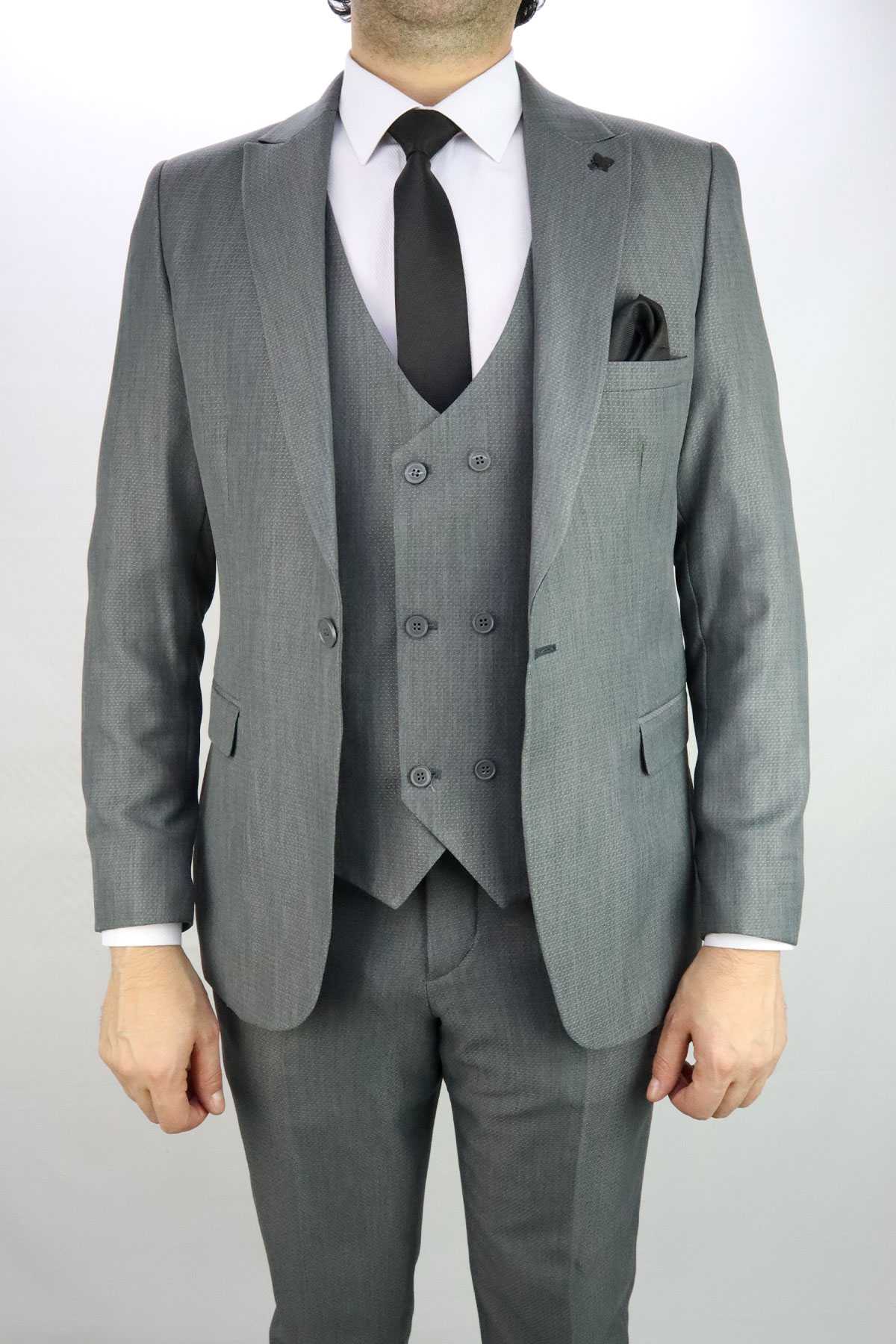 Vito Andolini Gri Armürlü Slimfit Erkek Takım Elbise