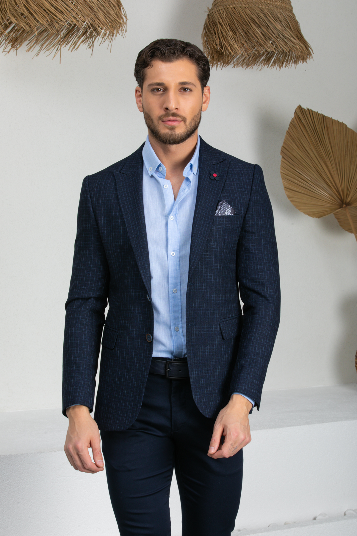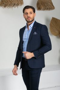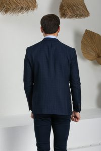Vito Andolini Lacivert Kareli Slim Fit Erkek Tek Ceket