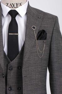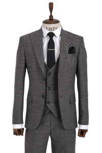 ZAYFA GRİ DESENLİ 2 DÜĞME SLİM FİT YELEKLİ ERKEK TAKIM ELBİSE