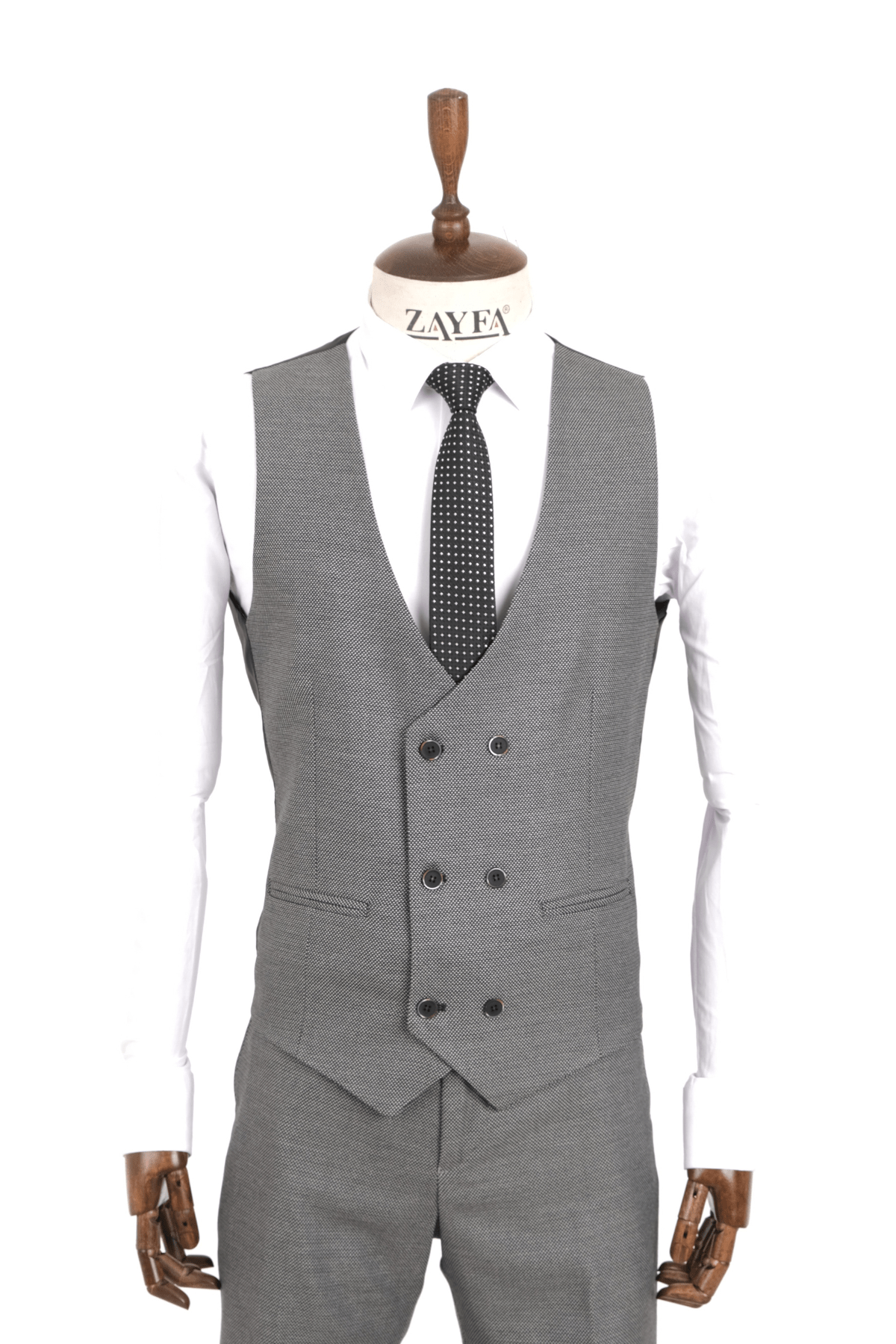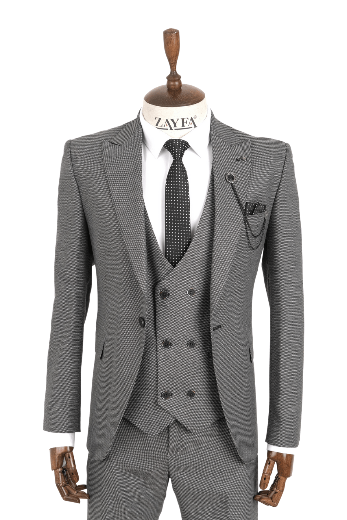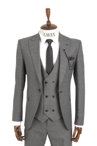 Zayfa Gri Slim Fit Yelekli Erkek Takım Elbise