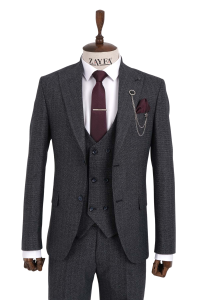 Zayfa Lacivert Desenli Slimfit Yelekli Erkek Takım Elbise ₺3.635,45