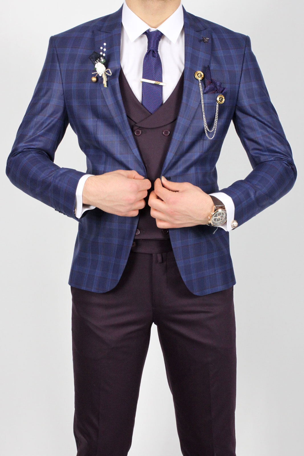 Zayfa Lacivert Ekose Slim Fit Yelekli Erkek Takım Elbise ₺3.635,45