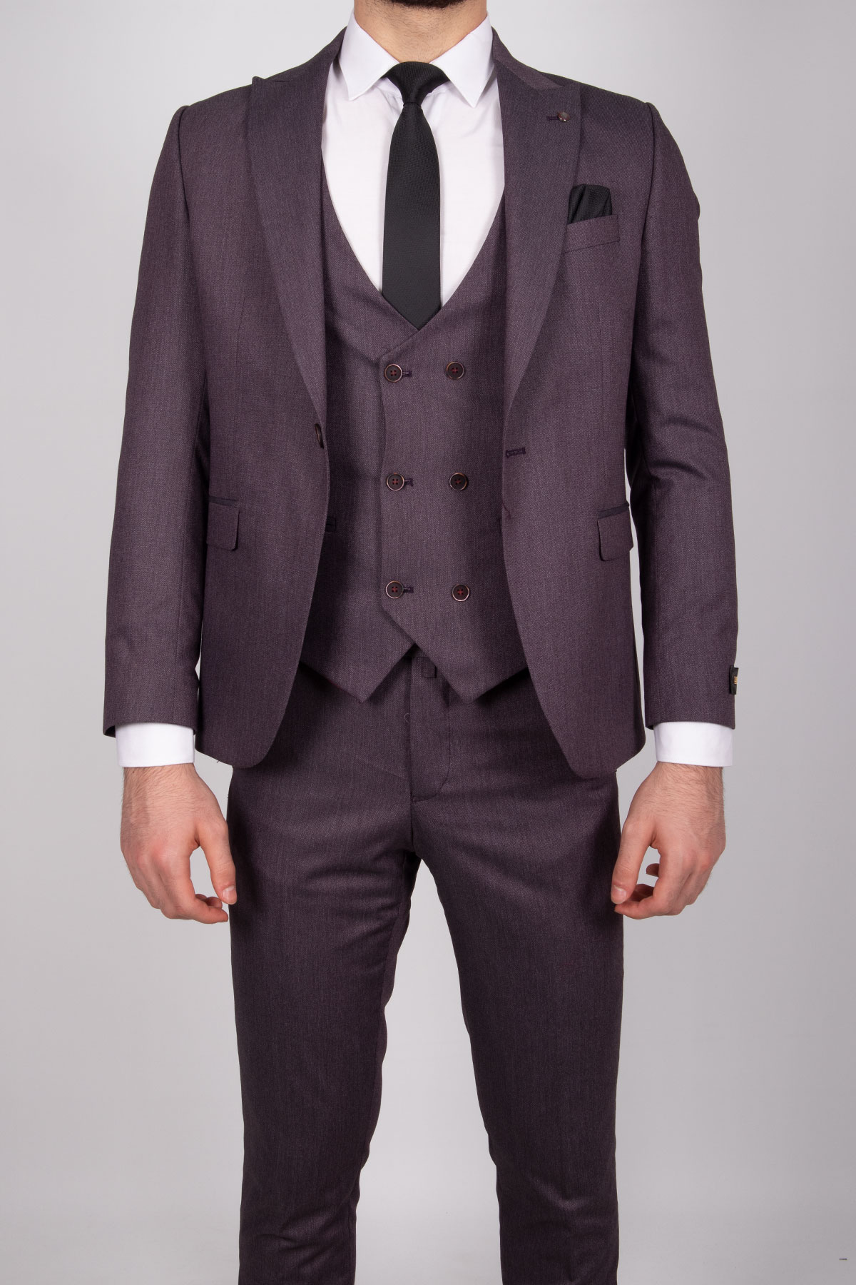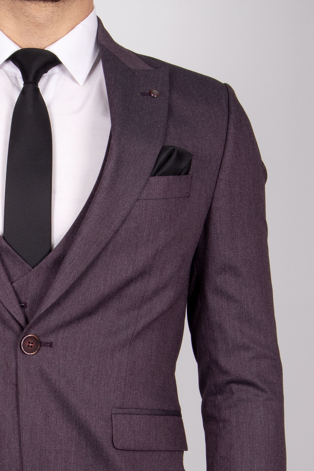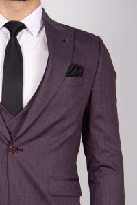 Zayfa Mürdüm Slim Fit Yelekli Erkek Takım Elbise