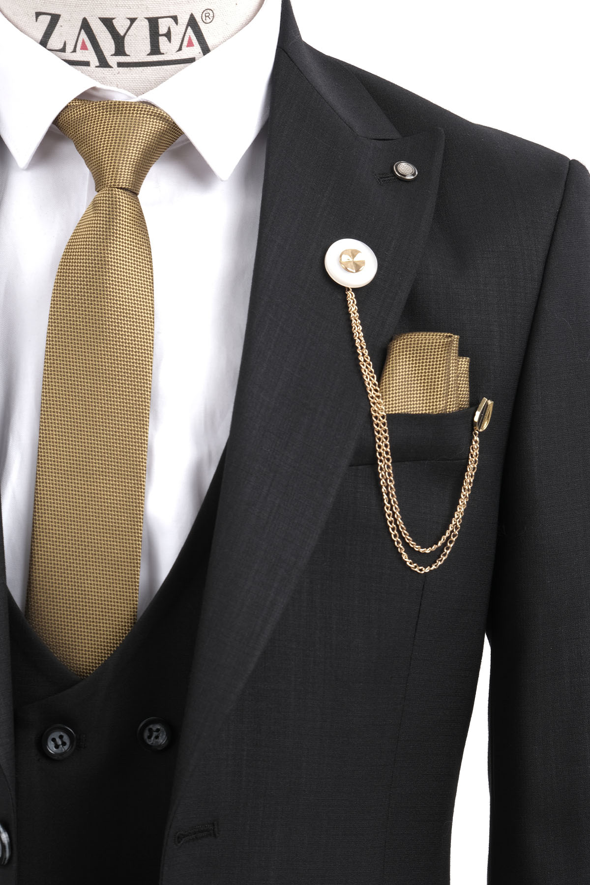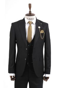ZAYFA SİYAH 2 DÜĞME SLİM FİT YELEKLİ ERKEK TAKIM ELBİSE
