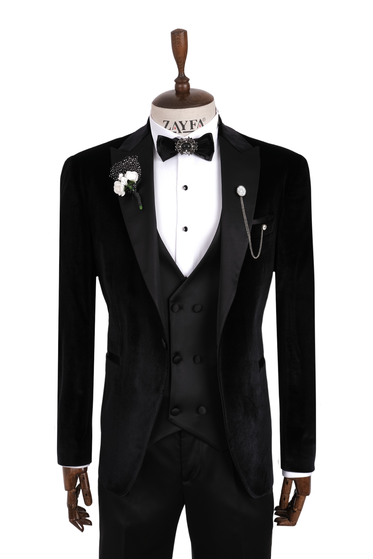 Zayfa Siyah Kadife Erkek Damatlık Smokin