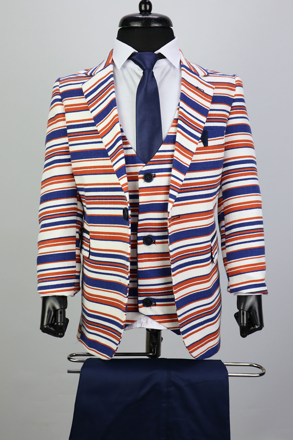 Zyf Renkli Çizgili Yelekli Çocuk Takım Elbise